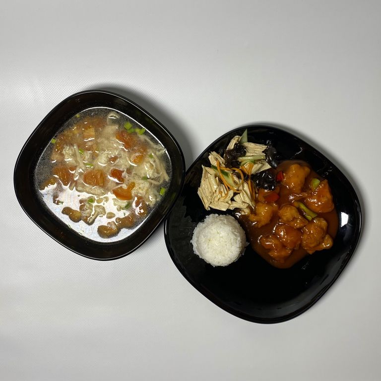 - Суп "Китайска уха" (судак, пангасиус, муэр, помидор, редька маринованная)